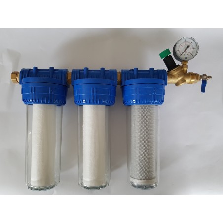 Zestaw składa sie z trzech komór zawierających odpowiednio wkłady filtrujące 20um, 1um i filtr węglowy. W zestawie zamontowany jest manometr o reduktor ciśnienia. Redukcja ciśnienia wymagana jest dla urządzeń przepływowych . Na specjalne zamówienie możemy rozbudować zestaw o dodatkowe filtry lub wyposażyć w dowolne zgodne z wymaganiami.
