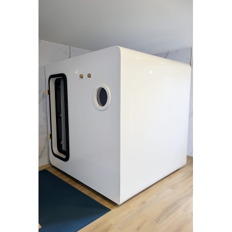 Komora multibaryczna MBOT&H2 to nowatorskie urządzenie o specjalnej konstrukcji. W podstawowym module jej wymiary to : 2 m, szerokość 1,8 m, wysokość 1,9 m. Komora przede wszystkim, pełni funkcję terapeutyczną i prozdrowotną na co dzień, ale w razie zagrożenia (konfliktu zbrojnego, katastrofy naturalnej czy skażenia) służy jako schron dla 4-5 osób.